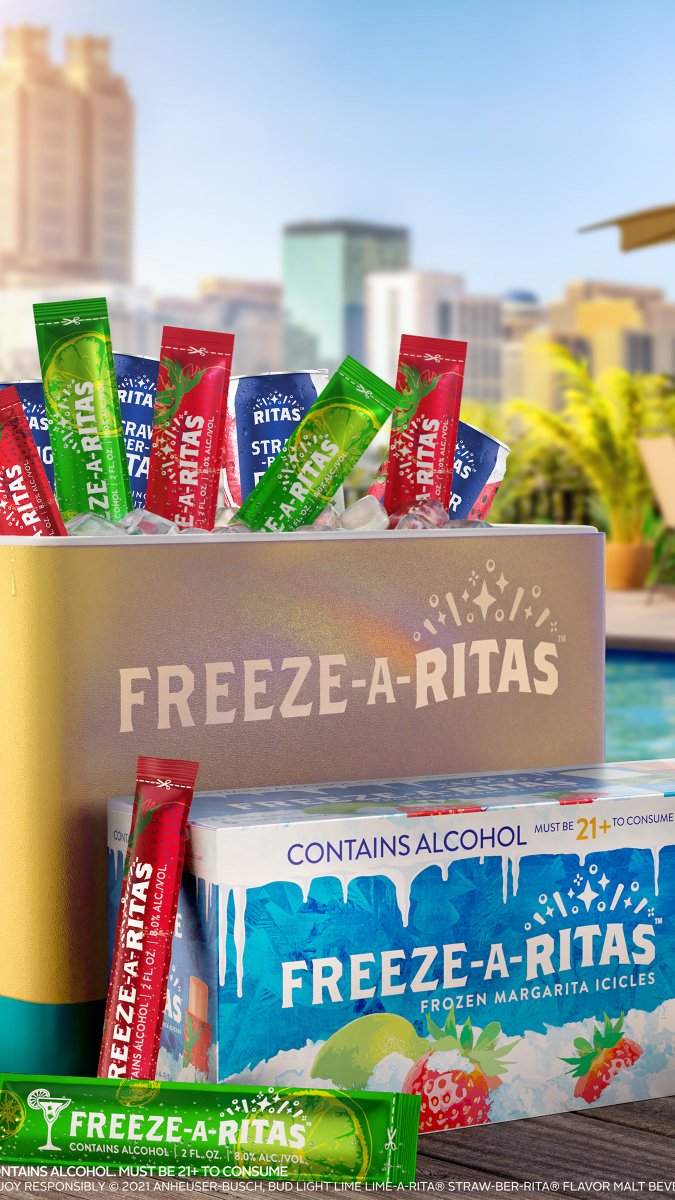 The Ritas Available in Lime & Strawberry, each pouch packs a refreshing punch of the iconic RITAS flavor you love. At 55 calories or less and 8% ABV per 2oz pop, FREEZE-A-RITAS is the perfect wingman for wherever summer 2022 takes you. RITAS FREEZE-A-RITAS LIME FREEZE-A-RITAS