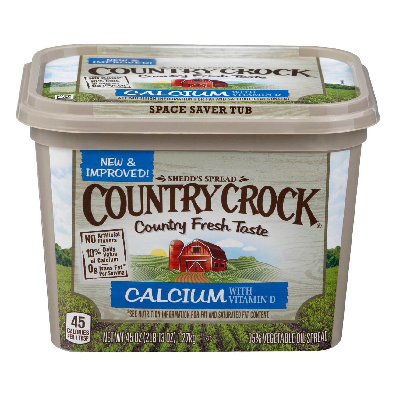 Country Crock Original Spread - Shop Butter & Margarine at H-E-B Great for spreading, topping, cooking or just about anything. This spread also contains 0 grams trans-fat per serving, 50 calories per one tablespoon, and 79% less saturated fat than butter. It is also free of gluten, cholesterol, partially hydrogenated oils, and comes in a 67.5 oz tub. Preparation instructions Keep refrigerated. Country Crock Plant Butter with Olive Oil Sticks - Instacart • 1:1 SWAP: Country Crock® Plant Butter is a no-sacrifice 1:1 alternative for dairy butter when it comes to taste and performance. Ingredients Blend Of Plant-based Oils (palm Fruit, Palm Kernel, Canola And Olive Oil), Water, Salt, Pea Protein, Sunflower Lecithin, Citric Acid, Vitamin A Palmitate, Natural Flavor, Beta Carotene (color).