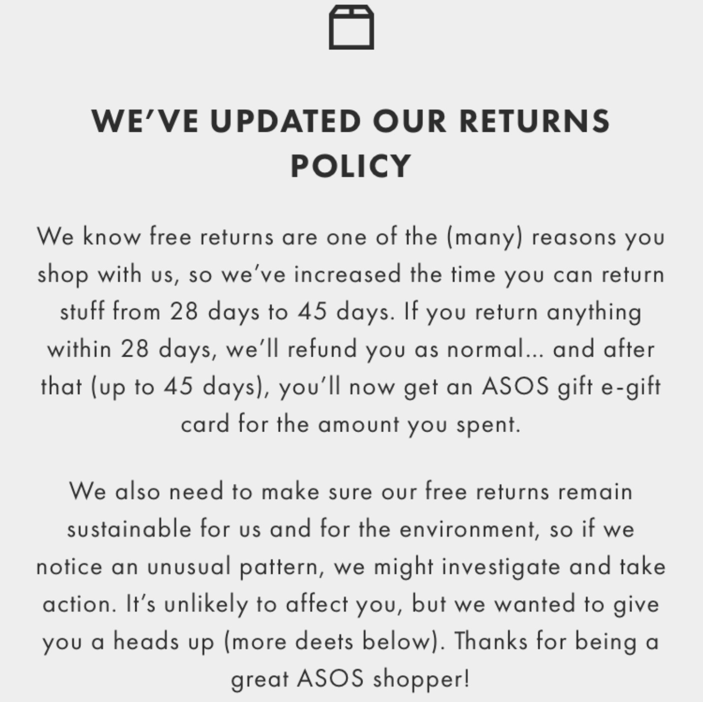 38 asos return without tag