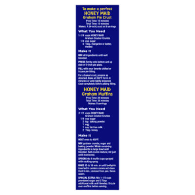 Honey maid graham crackers nutrition label. Grahams crackers by HONEY MAID nutrition facts and analysis. Grahams crackers by HONEY MAID contains 0 g of saturated fat and 0 mg of cholesterol per serving. 31 g of Grahams crackers by HONEY MAID contains 0.0 mg vitamin C as well as 1.08 mg of iron, 0.00 mg of calcium, 70 mg of potassium. Grahams crackers by HONEY MAID belong to 'Cookies & Biscuits' food category. The UPC for this product is 04449003. Honey Maid Graham Crackers, Individually Wrapped 0.5 Ounce Packages ... Find many great new & used options and get the best deals for Honey Maid Graham Crackers, Individually Wrapped 0.5 Ounce Packages (Pack of 200 at the best online prices at eBay! Free shipping for many products! Honey Maid Fresh Stacks Graham Crackers, Mothers Day Baking, 1 Box of 6 ... Premium Original Fresh Stacks Saltine Crackers, 13.6 oz. $2.98. current price $2.98. 21.9 ¢/oz. Premium Original Fresh Stacks Saltine Crackers, 13.6 oz. 625. 4.7 out of 5 Stars. 625 reviews. Pickup 2-day shipping. Honey Maid Cinnamon Graham Crackers, 14.4 oz Family Size Box. EWG's Food Scores | Honey Maid Grahams Crackers, Honey UNBLEACHED ENRICHED FLOUR (WHEAT FLOUR, NIACIN, REDUCED IRON, THIAMINE MONONITRATE {VITAMIN B1}, RIBOFLAVIN {VITAMIN B2}, FOLIC ACID), GRAHAM FLOUR (WHOLE GRAIN WHEAT FLOUR), SUGAR, SOYBEAN OIL, HONEY, LEAVENING (BAKING SODA AND/OR CALCIUM PHOSPHATE), SALT, SOY LECITHIN, ARTIFICIAL FLAVOR. Product Images