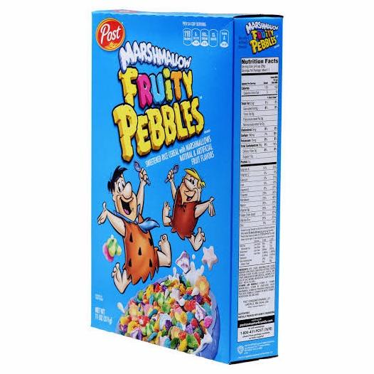 › products › fruity-pebblesFruity PEBBLES™ - Pebbles Cereal PEBBLESFRUITY PEBBLES™. 4.5. 387 Reviews Write a Review. 90%. of respondents would recommend this to a friend. Fruity PEBBLES™. The Fruity way to rock. Fruity PEBBLES™ cereal is a sweetened crispy rice cereal with intense fruity flavor. Fruity PEBBLES™cereal, with its delicious taste has been a family favorite for over 40 years!