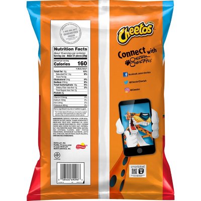 Nutrition label cheetos. Calories in Cheetos - Calorie, Fat, Carb, Fiber, & Protein Info Calories in Cheetos based on the calories, fat, protein, carbs and other nutrition information submitted for Cheetos. Hot Cheetos Nutrition Facts: Everything Explained 4. Protein. Hot Cheetos offers 2 grams of protein per serving. For young adults, daily protein intake should be around 45 grams a day. The snack does not offer enough protein to be seen as a healthy substitute for other protein sources. 5. Vitamins and Minerals. However, it is not all bad for Hot Cheetos. CHEETOS® Crunchy FLAMIN' HOT® Cheese Flavored Snacks | Cheetos CHEETOS ® Crunchy FLAMIN' HOT ® Cheese Flavored Snacks are full of flavor and made with real cheese. Nutrition Facts Ingredients Buy Now Buy Now CHEETOS® Crunchy FLAMIN' HOT® Cheese Flavored Snacks (opens a popup) Product Reviews ★★★★★ ★★★★★ 4.2 5 Reviews 2 out of 5 (40%) reviewers recommend this product ϙ Rating Snapshot CHEETOS ® Simply Puffs White Cheddar Cheese Flavored Snacks CHEETOS ® Simply Puffs White Cheddar Cheese Flavored Snacks are made with no artificial flavors, preservatives, or colors. Nutrition Facts Ingredients Buy Now Buy Now CHEETOS® Simply Puffs White Cheddar Cheese Flavored Snacks (opens a popup) Product Reviews ★★★★★ ★★★★★ 2.3 19 Reviews 6 out of 18 (33%) reviewers recommend this product