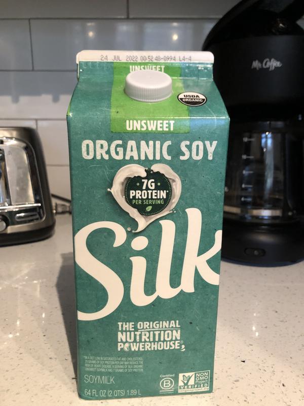 Silk Organic Unsweetened Soy Milk - 0.5gal : Target Silk Organic Unsweetened Soymilk is totally free of dairy, lactose, carrageenan, gluten, casein, egg, peanut, and MSG. It's a powerhouse of nutritional goodness, too: each serving provides calcium and heart-healthy protein.*. *In a diet low in saturated fat and cholesterol, 25 grams of soy protein per day may reduce the risk of heart disease.