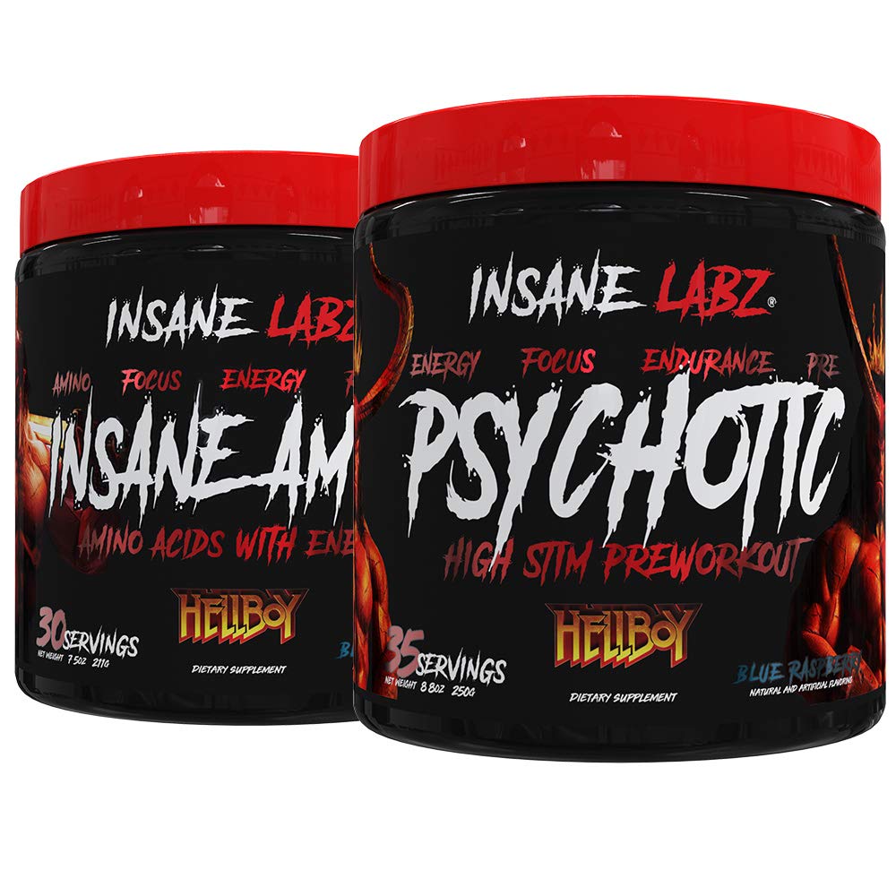 Insane Labz Hellboy Bundle, Psychotic Hellboy Pre Workout and Insane Amino BCAA, Increase Muscle Mass, Strength, Focus and Recovery Time, Blue ...