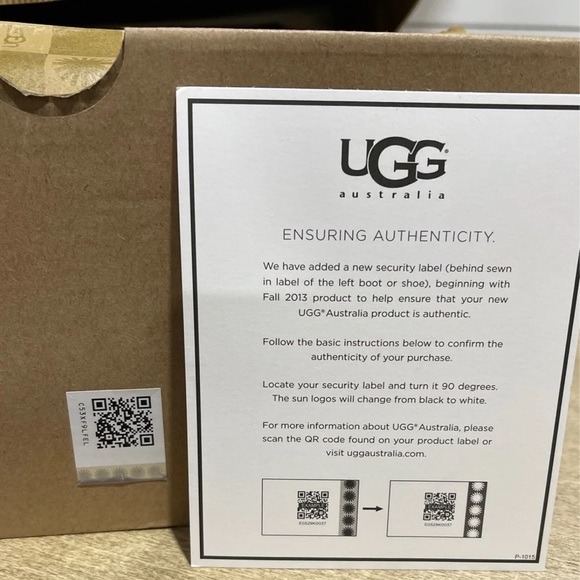 How do I scan my Ugg security label? The new security label (behind sewn in label of the left shoe) utilizes a QR (quick response) code that can be scanned by any smartphone. When scanned, the QR code will take you to an uggaustralia.com landing page that verifies the product as genuine UGG.